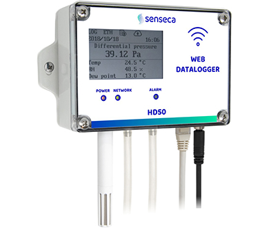 HD501N4r1ZTVは温湿度プローブが下方本体一体で差圧センサ内蔵の温湿度・差圧WEBデータロガーです。露点温度・湿球温度・絶対湿度・混合比・水蒸気分圧が演算値を記録できます。